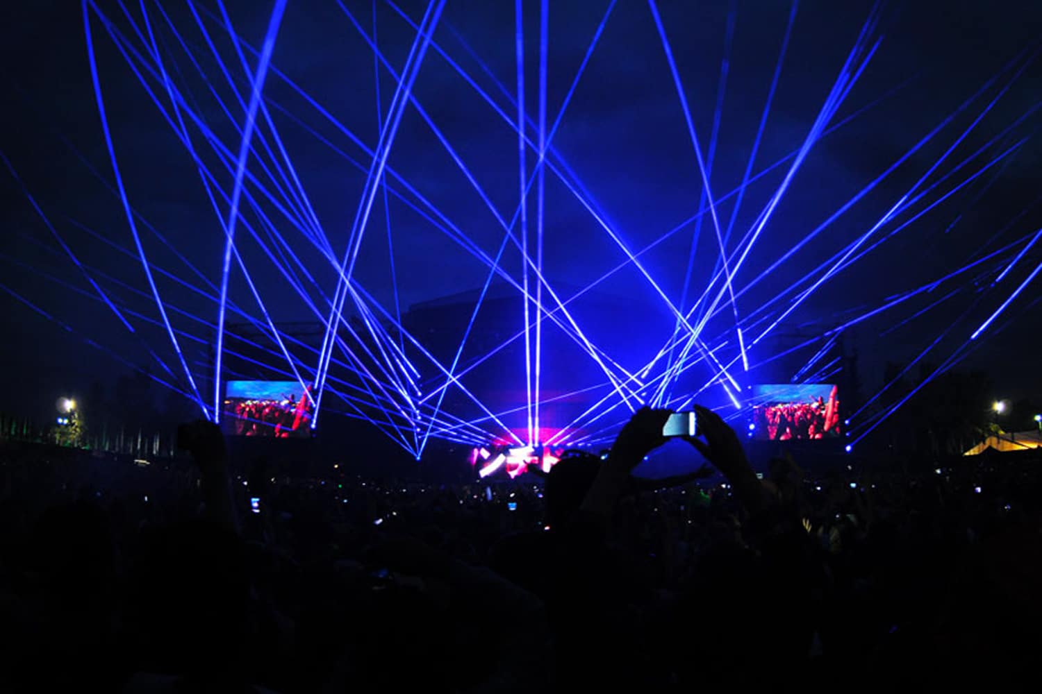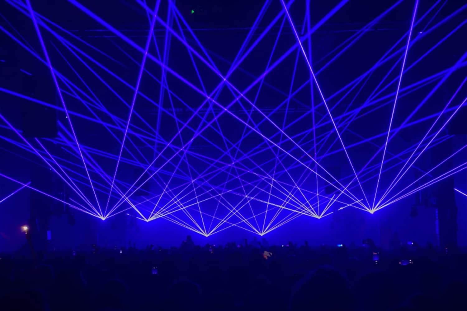 The BlueBeam built in house is an innovative multi-head laser fixture designed to create striking aerial effects that transform any stage or event space.