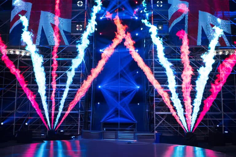 The C-Flamer Quad features a waterproof stainless-steel casing that withstands touring and outdoor environments while delivering long-duration performance. Control is handled via DMX-512, enabling precise programming of colour transitions, timing, and synchronized cues alongside lighting and other FX.