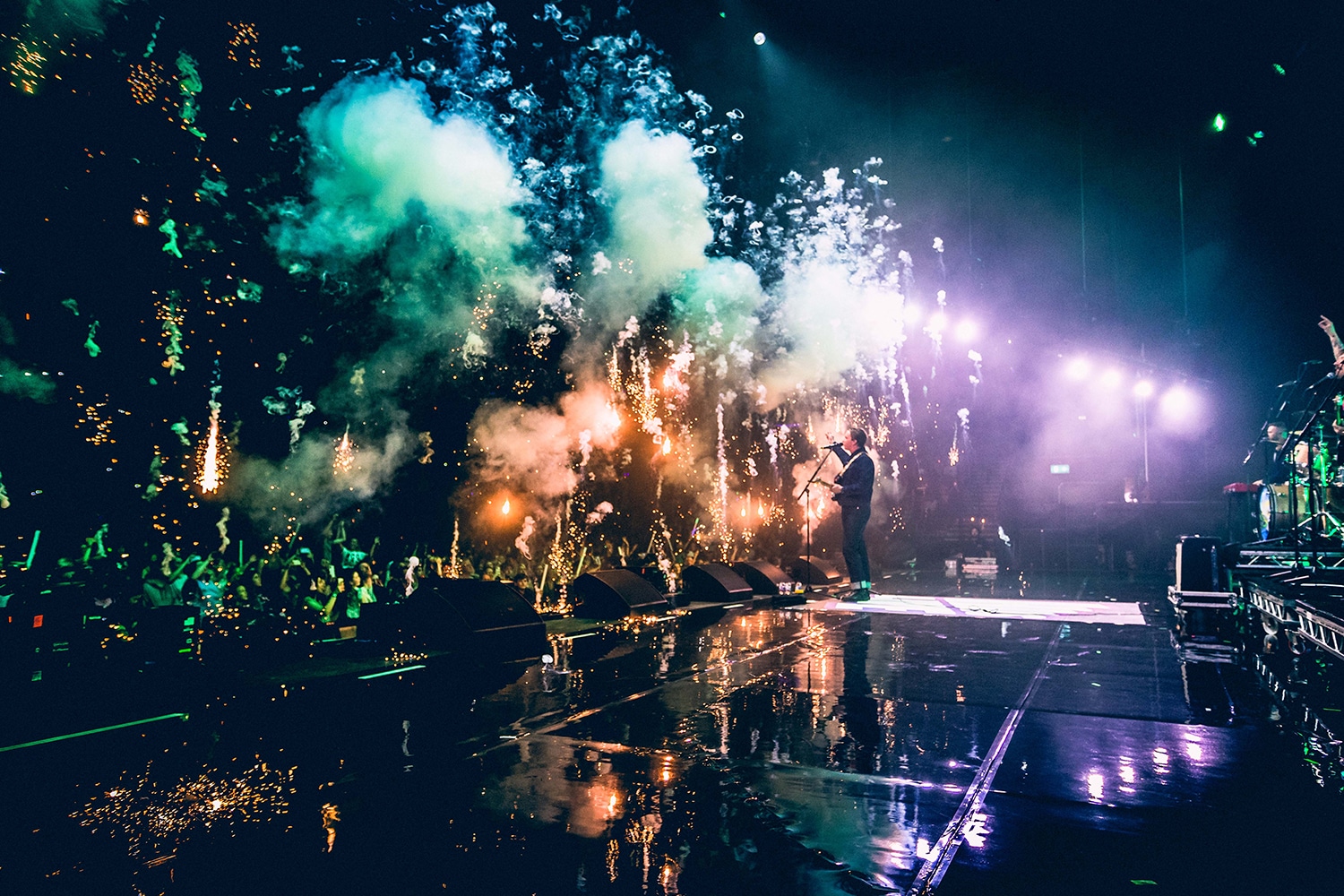 Ideal for use in combination with other special effects, the Vesuvio excels at adding depth and dimension to live events. It pairs seamlessly with CO2 jets and other smoke effects, firing downward to complement dramatic CO2 bursts or acting as a standalone source of colourful fog that enhances visual impact.